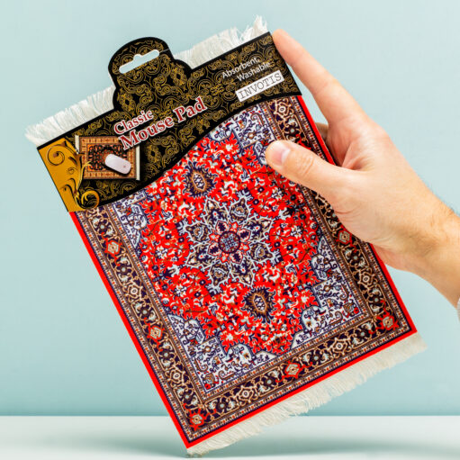 Tijdens het werk wil je lekker comfortabel kunnen zitten, toch? Laat je pols daarom rusten op de Perzisch tapijt muismat van Invotis. Dit mooie tapijtje ziet er luxe uit en voelt heerlijk zacht aan. Het is wat klein om op de grond te leggen, maar voor op je bureau is het perfect. Je muis glijdt vlekkeloos over het zachte materiaal en zorgt ervoor dat je geen krassen op je bureau krijgt. Door de rubberen onderkant, glipt de muismat niet weg. Wie gun jij ook een luxe gevoel tijdens het werken? Geef diegene deze unieke muismat cadeau!