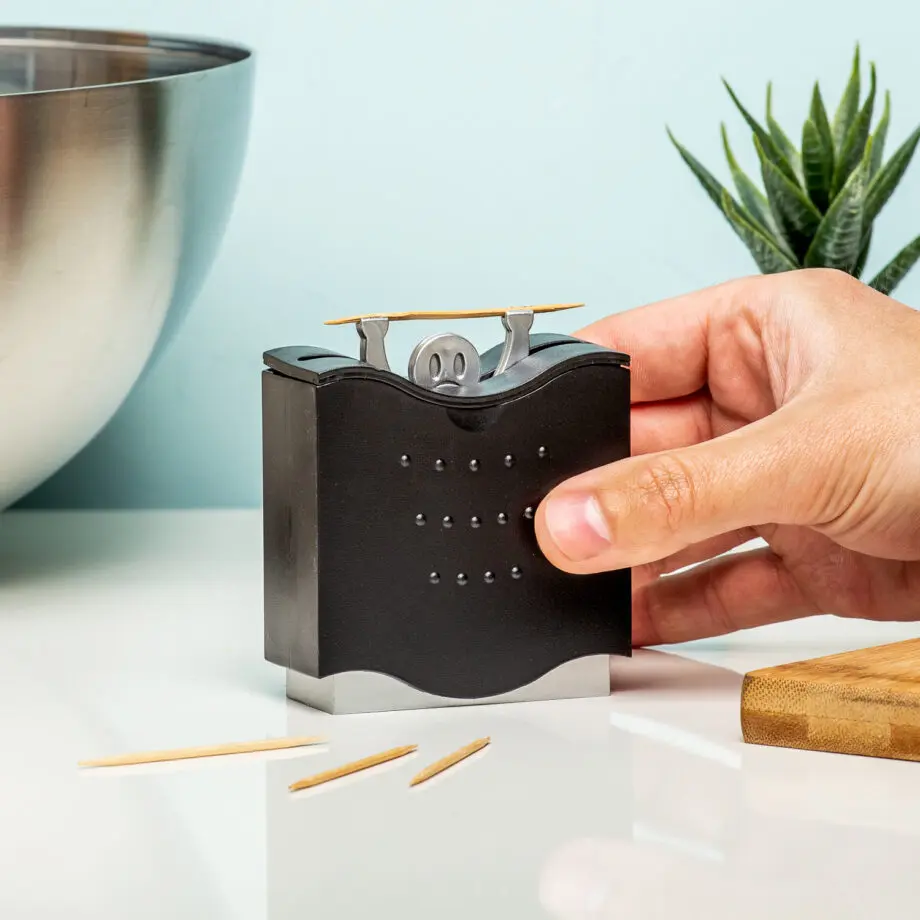 Serveer jij op een feestje graag lekkere hapjes? Met de Pick a Boo! cocktailprikkerhouder doe je dat op een originele manier! Deze grappige cocktailprikkerhouder ziet er al uniek uit: het is een spookje dat over de rand kijkt. Schuif je de houder omhoog, dan heeft โie opeens een prikker in zijn handen. Met deze cocktailprikkerhouder pakken mensen graag hun eigen prikker om in een bitterbal, blokje kaas of een augurk te steken.
