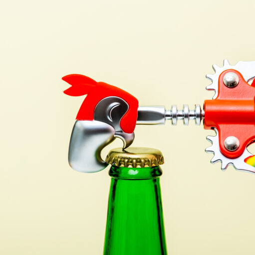 Waan je in tropische sferen met de Pinot kurkentrekker van Ototo. Deze vrolijke kurkentrekker en flesopener ziet eruit als een papegaai. Hij heeft zijn bontgekleurde vleugels gespreid: druk je deze naar beneden dan ontkurk je de fles wijn. Ook kroondoppen vormen geen enkel probleem voor deze vogel: hij wipt ze zo van je flesje met zijn snavel.