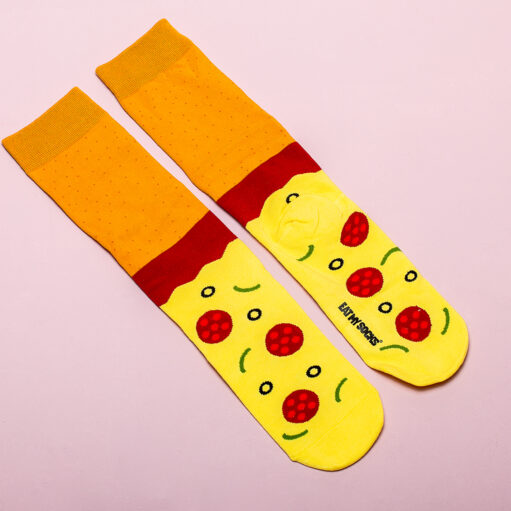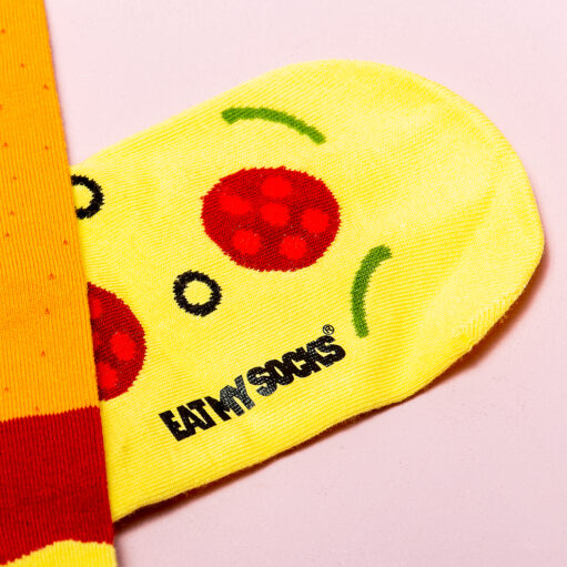 Pizzadag: onze favoriete dag in de week. Een dag waarop de Pizza sokken van Eat My Socks aan onze voeten prijken. Deze hilarische sokken zien eruit als een pizzapunt, maar zijn in werkelijkheid toch vooral geschikt om aan te trekken. De verpakking bevat één paar sokken. Een geweldig cadeautje voor pizzalovers.