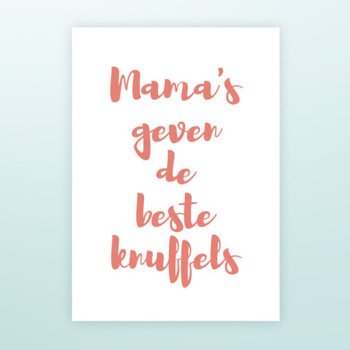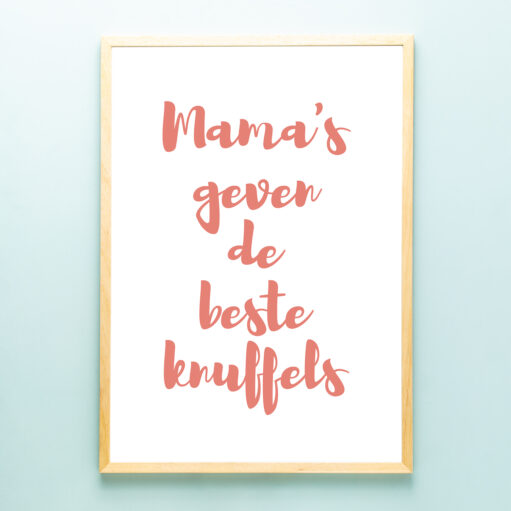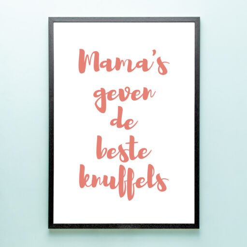 Er is geen plek veiliger dan in de armen van je moeder. Als je klein bent en stiekem als je groot bent ook. De Poster Mama’s geven de beste knuffels (A2 formaat) is speciaal ontworpen voor jouw moeder. Deze lieve poster is perfect als cadeautje voor bijvoorbeeld je moeders verjaardag of Moederdag. Wedden dat ‘ie een pronkplek in huis krijgt? Deze poster is leverbaar met of zonder lijst.
