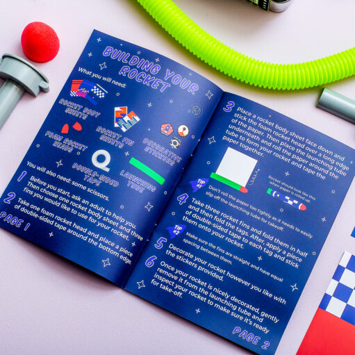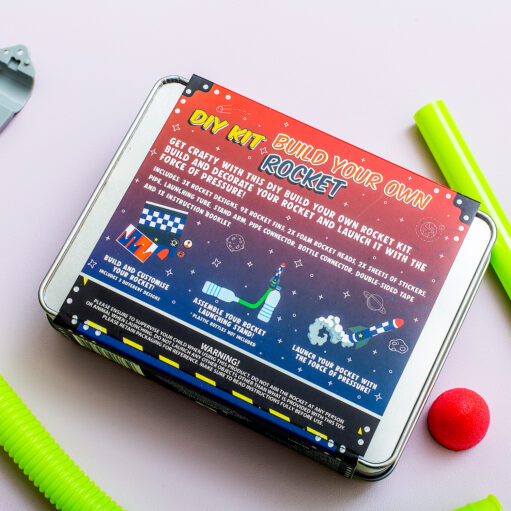 Twee plastic flessen en alle benodigdheden uit de Raket DIY set van Gift Republic: dat is alles wat je nodig hebt om zelf een raket te maken. In deze creatieve DIY kit zitten onder andere stickers, een lanceersysteem, raketneuzen van foam en dubbelzijdig tape. Het maken van de raket is een leuk en leerzaam project voor kinderen en geweldig om samen te doen met een volwassene.