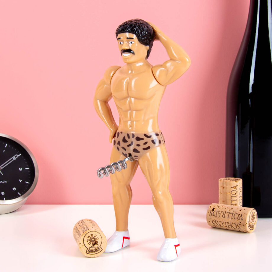 Hij is sterk, gespierd, heeft een hippe snor en een perfecte lengte van 20 centimeter: deze Retro man kurkentrekker. Met zijn sterke metalen kurkentrekker opent hij elke fles wijn voor jou en dat doet โ€˜ie natuurlijk zo sexy mogelijk. Deze humoristische kurkentrekker is het perfecte cadeau voor je vrijgezelle vriendin of collega.