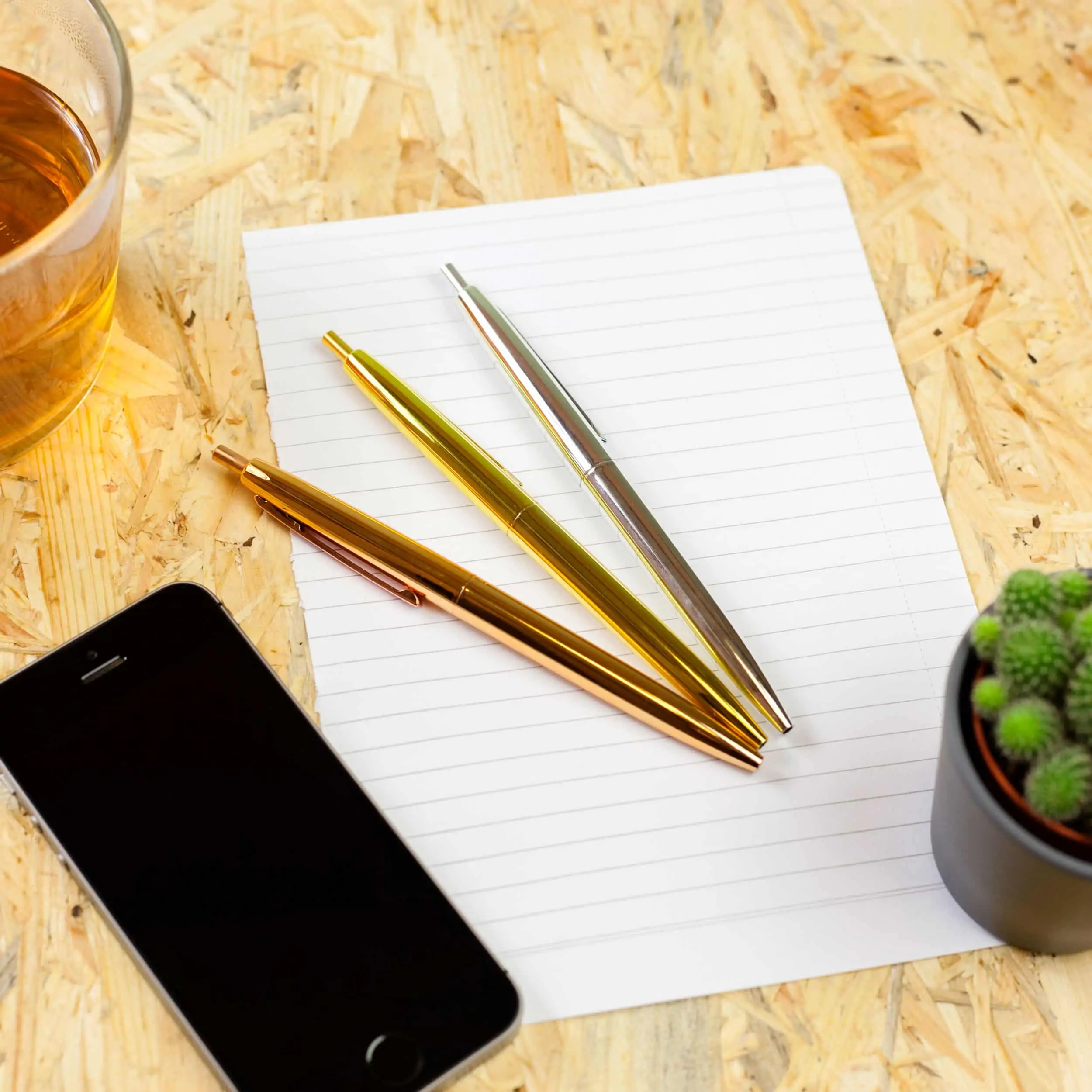 Een belangrijke vergadering kun je niet beginnen zonder mooie pen. Wat moeten ze wel niet denken als je de notulen noteert met een afgekloven balpen? Met de Retro pennen van Kikkerland schrijf je met de mooiste pennen. Het is een set van 3, waarvan elke pen een andere kleur heeft. De stijlvolle pennen zijn namelijk in een retro jasje gestoken en hebben een gouden, zilveren en koperen omhulsel. Kun je mooi zeggen dat die aantekeningen met een gouden pen zijn opgeschreven. Dit setje pennen is erg leuk om cadeau te geven aan iemand die voor school of werk veel moet schrijven.