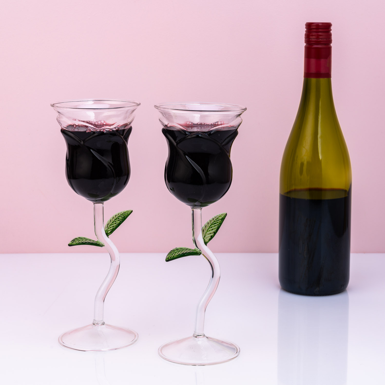 Wil jij je geliefde op een originele manier verrassen en zijn jullie dol op een wijntje? Geef haar dan het Roos wijnglas (set van 2) van MikaMax cadeau! Deze set wijnglazen zijn heel bijzonder: ze zien er namelijk uit als een roos. Schenk de glazen vol met rosé of rode wijn: dan kleurt de kelk de kleur van de wijn. Deze originele roos wijnglazen zijn perfect voor jullie jubileum, Valentijnsdag of een andere romantische gelegenheid.