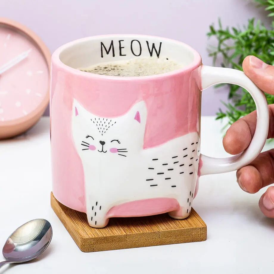 Een cadeautje nodig voor een dierenliefhebber? Met de Schattige kat mok van Winkee zit je altijd goed. Want wie is er nou niet dol op de combinatie van een roze mok met een schattig glimlachend katje? Deze leuke beker zorgt ervoor dat je slechte bui als sneeuw voor de zon verdwijnt. Aan de binnenkant van de mok staat MEOW. en de staart vormt het oor.