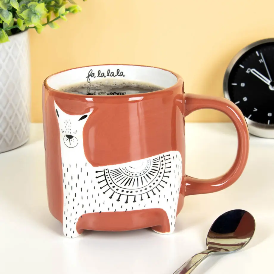 Sing je ochtend in met “fa la la la” โ want dat staat aan de binnenkant van deze vrolijke oranje mok met een lama erop. Perfect voor wie z’n koffie met een glimlach wil drinken en van schattige dieren houdt. Deze mok heeft genoeg ruimte voor een flinke bak koffie of thee, ideaal voor lange werkdagen of luie zondagochtenden. Ideaal cadeau voor lama-liefhebbers die hun dag graag muzikaal beginnen!