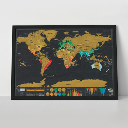 Herinneringen aan je reizen zijn altijd leuk om te hebben. Mensen maken niet voor niets overal foto’s van. Maar ook op een wereldkaart kan je laten zien waar je allemaal al bent geweest. De Scratch Map Deluxe reiseditie van Luckies kun je gewoon meenemen onderweg. Hij is kleiner dan de reguliere Scratch Map, zodat je in elk nieuw land een laagje krasfolie weg kunt krassen. Deze persoonlijke wereldkaart is zwart en heeft een laagje koperfolie over alle landen en eilanden. Met een muntje kan je de folie van de landen waar je bent geweest afkrabben.