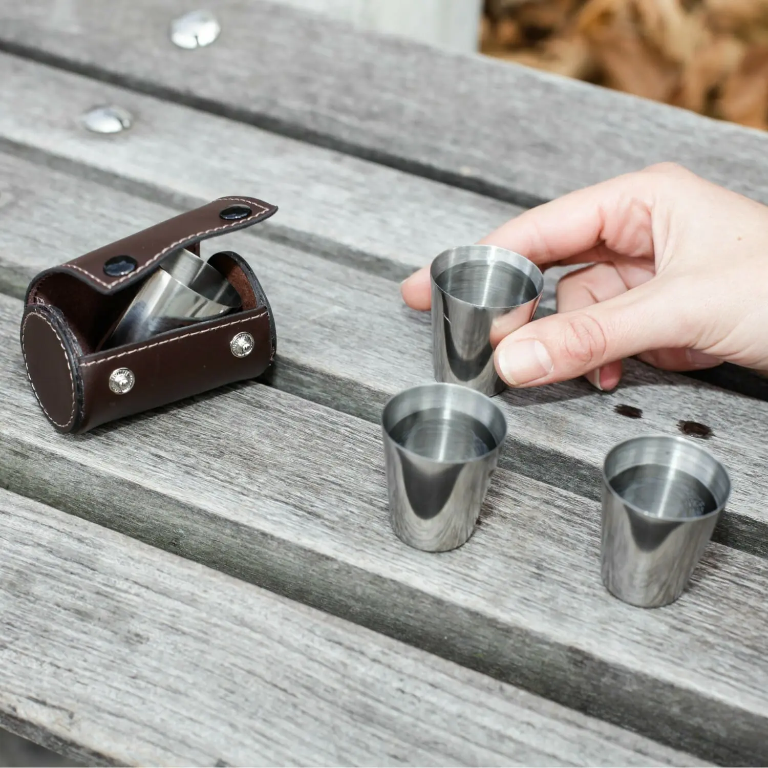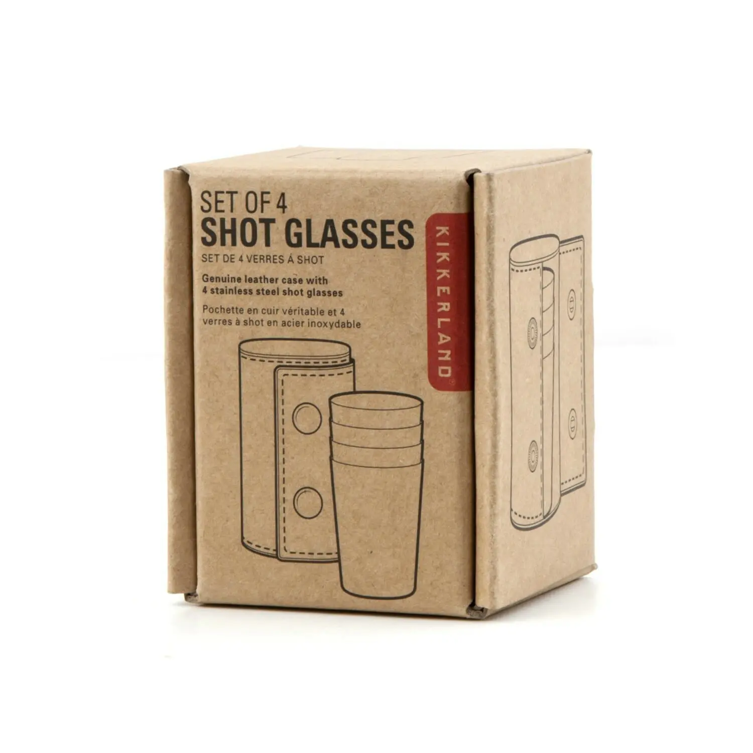- Set met vier rvs shotglaasjes in een chique opberghoes