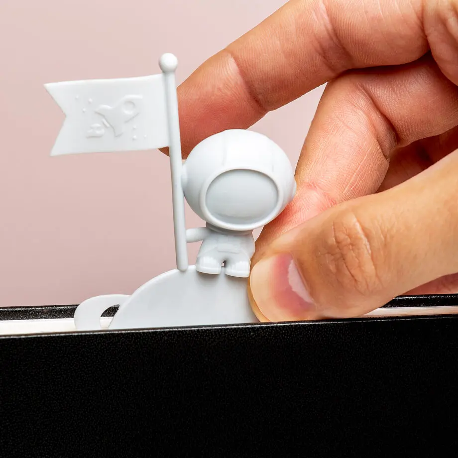Ga van de gebaande paden af: de ruimte in bijvoorbeeld! Misschien niet echt, maar dan in elk geval met je boek. Met een spannend boek vergeet je alles om je heen en kun je heerlijk relaxen. Goed voor je ogen ook: even niet naar een lichtgevend scherm staren. Met de Spacemark boekenlegger van Ototo is het eenvoudig te onthouden waar je bent gebleven met lezen. Deze leuke astronaut staat op een planeet, die je tussen de paginaโs in je boek doet. De vlaggenmast en de voeten van de astronaut zijn iets dikker dan de planeet, zodat deze bovenop de paginaโs blijven staan. Zowel kinderen als ouders zijn dol op deze Spacemark.