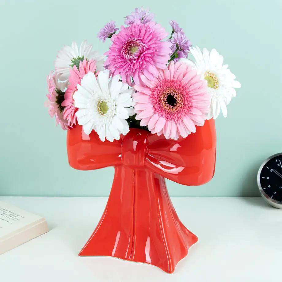 Rode vaas in de vorm van een strik van DOIY
