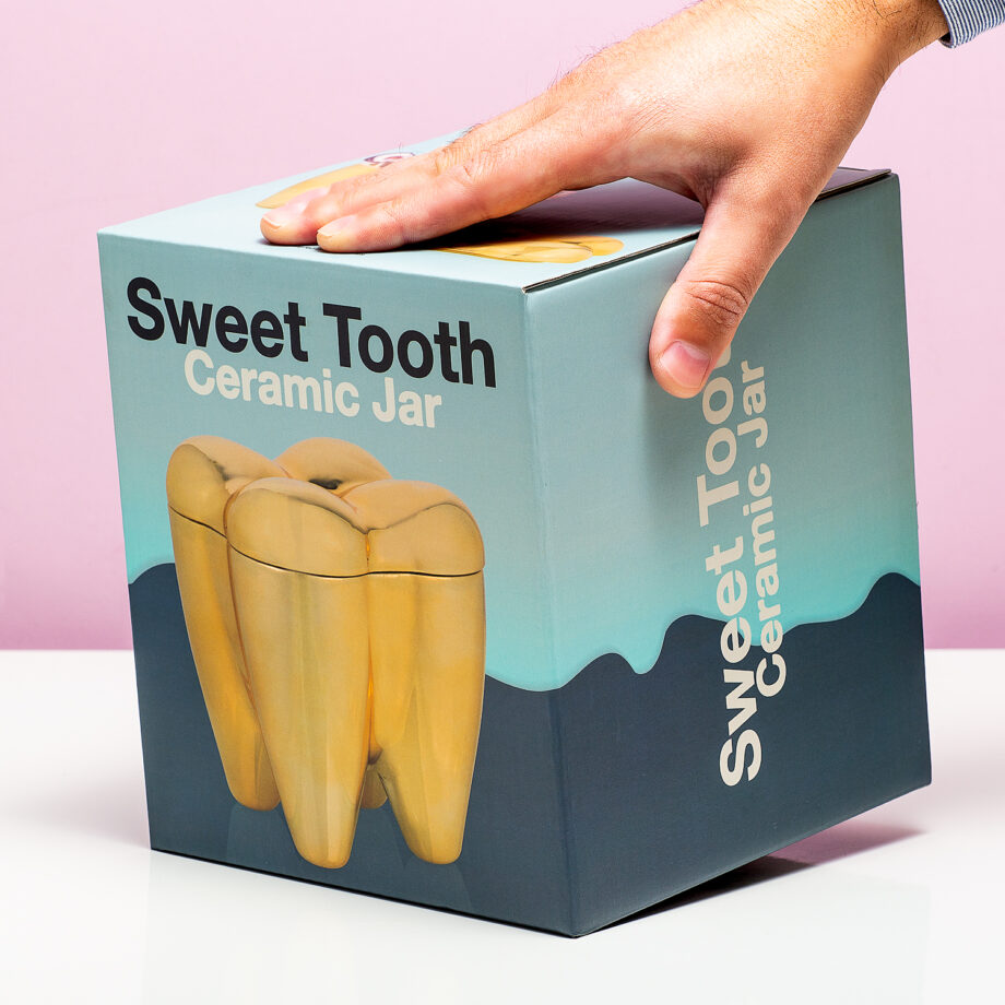 Doe eens origineel, met de Sweet Tooth snoeptrommel van Bitten. Deze grappige snoeptrommel is de perfecte manier om je zoetigheden in op te bergen. Elke keer wordt je eraan herinnert dat je goed je tanden moet poetsen na het snoepen: de snoeptrommel heeft namelijk de vorm van een kies. Ook grappig om in de badkamer te zetten.