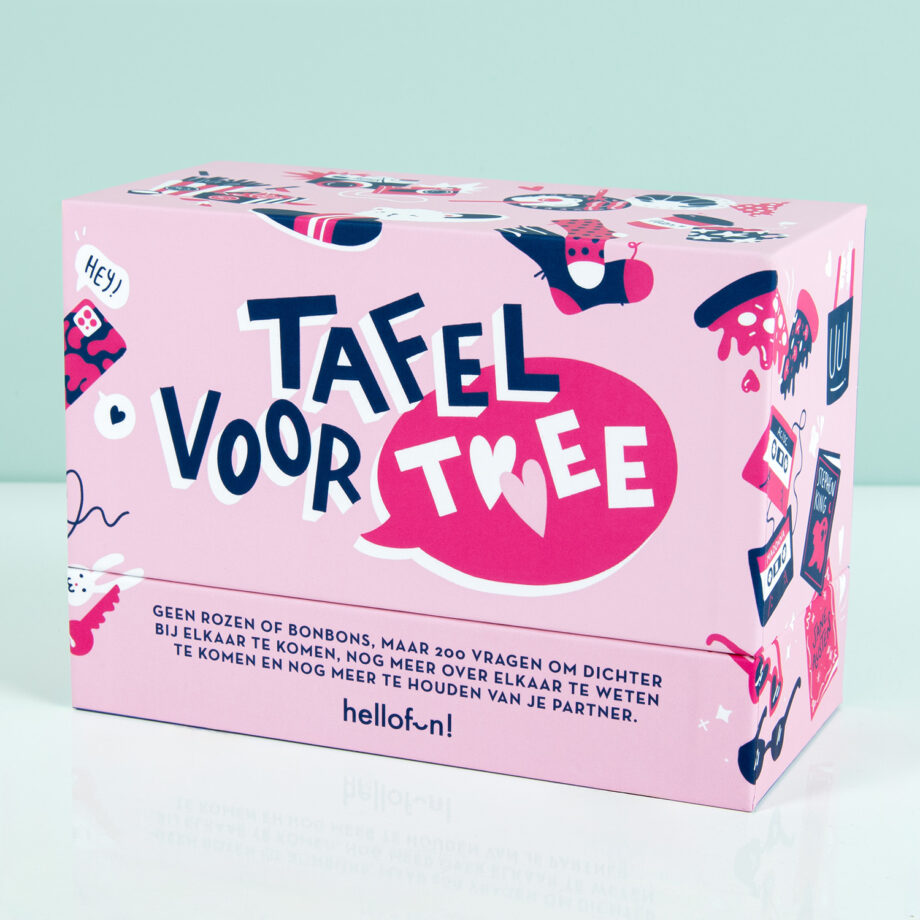 Hoe goed ken jij je partner echt? Dat kun je testen met het Tafel voor twee spel (Nederlandse editie) van Hellofun!. In deze vragenset zitten 200 kaarten in verschillende categorieën, die allemaal over jullie relatie en jullie als persoon gaan. Het doel van de vragen is om elkaar nog beter te leren kennen. Zo beantwoord je bijvoorbeeld de vraag: hoe denk je dat mijn perfecte dag eruitziet?