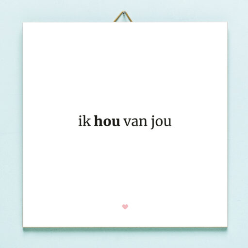 Liefde is alles wat je echt nodig hebt in het leven. Laat je partner, beste vriendin of moeder weten dat je van diegene houdt, met het Tegeltje Ik hou van jou. Of hang dit tegeltje op een mooie plek in je eigen huis: in de babykamer bijvoorbeeld, of in jullie slaapkamer. Het keramische tegeltje bevat de woorden die iedereen graag wil horen: ik hou van jou.