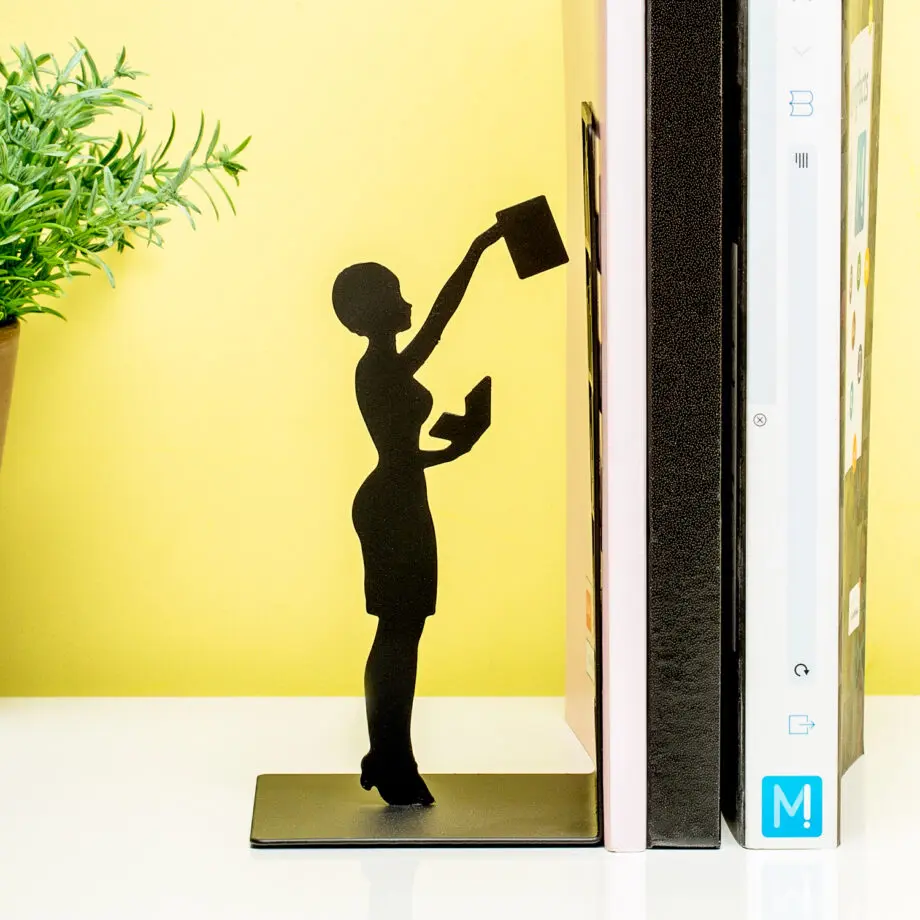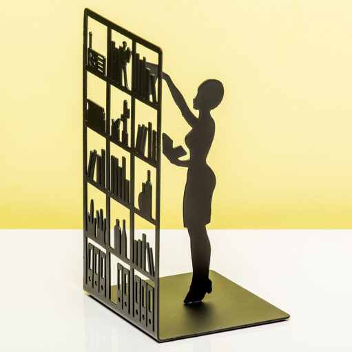 Laat je boekenkast nog meer voelen als een echte bibliotheek met de The Library boekensteun van Balvi. Deze unieke boekensteun van metaal geeft een boekenkast weer, met een bibliothecaresse of lezer die een boek terugzet. De steun zorgt ervoor dat een groepje losse boeken niet om kan vallen. Handig in een kast als je verschillende secties met boeken hebt, maar ook als je losse boeken op een plank wilt zetten. Door de siliconen dopjes aan de onderkant verschuift de boekensteun niet.