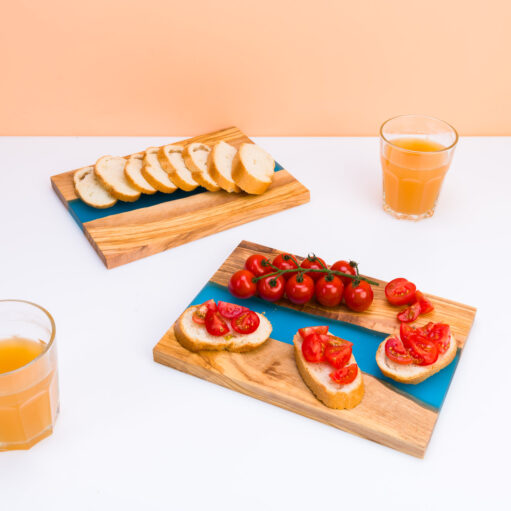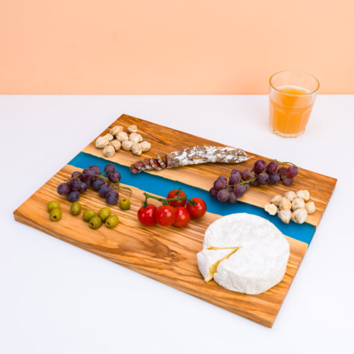 Ben jij dol op gezelligheid en de natuur? De The River snijplank van Winkee weet het in één keukenaccessoire te vangen. Deze unieke snij- en borrelplank ziet eruit alsof er een rivier tussen de oevers stroomt. De plank is gemaakt van olijfhout en heeft een blauwe rivier van resin. Je kunt kiezen tussen één grote plank of een set van twee kleinere planken.