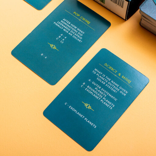 Weet jij waar pizza vandaan komt of waarom een blauwe hortensia roze wordt? Zo ja, dan heb jij grote kans om het Trivia spel van Gift Republic te winnen. Dit leuke spel bestaat uit honderd vragen over het door jou gekozen onderwerp. Het Trivia spel is leverbaar in verschillende versies: van algemene kennis tot thema’s als reizen, scheikunde en iconische decennia. Welke kies jij?