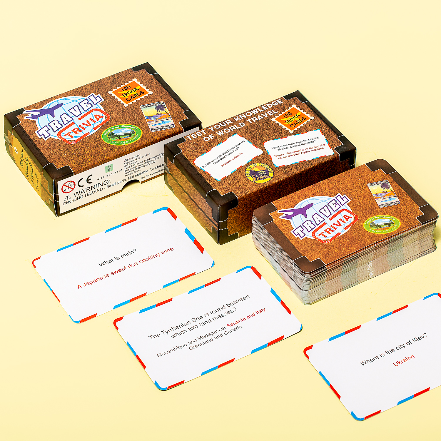 Weet jij waar pizza vandaan komt of waarom een blauwe hortensia roze wordt? Zo ja, dan heb jij grote kans om het Trivia spel van Gift Republic te winnen. Dit leuke spel bestaat uit honderd vragen over het door jou gekozen onderwerp. Het Trivia spel is leverbaar in verschillende versies: van algemene kennis tot thema’s als reizen, scheikunde en iconische decennia. Welke kies jij?