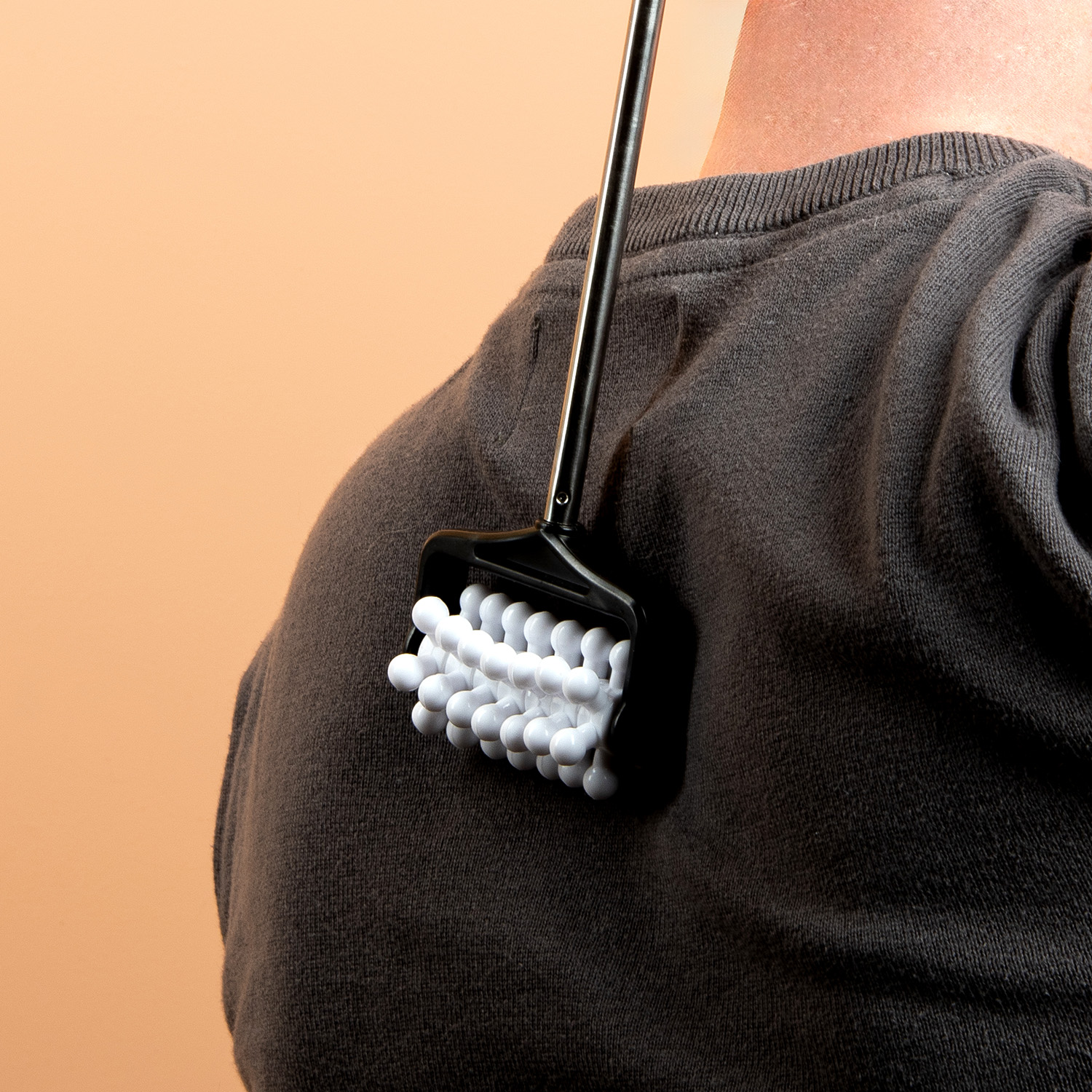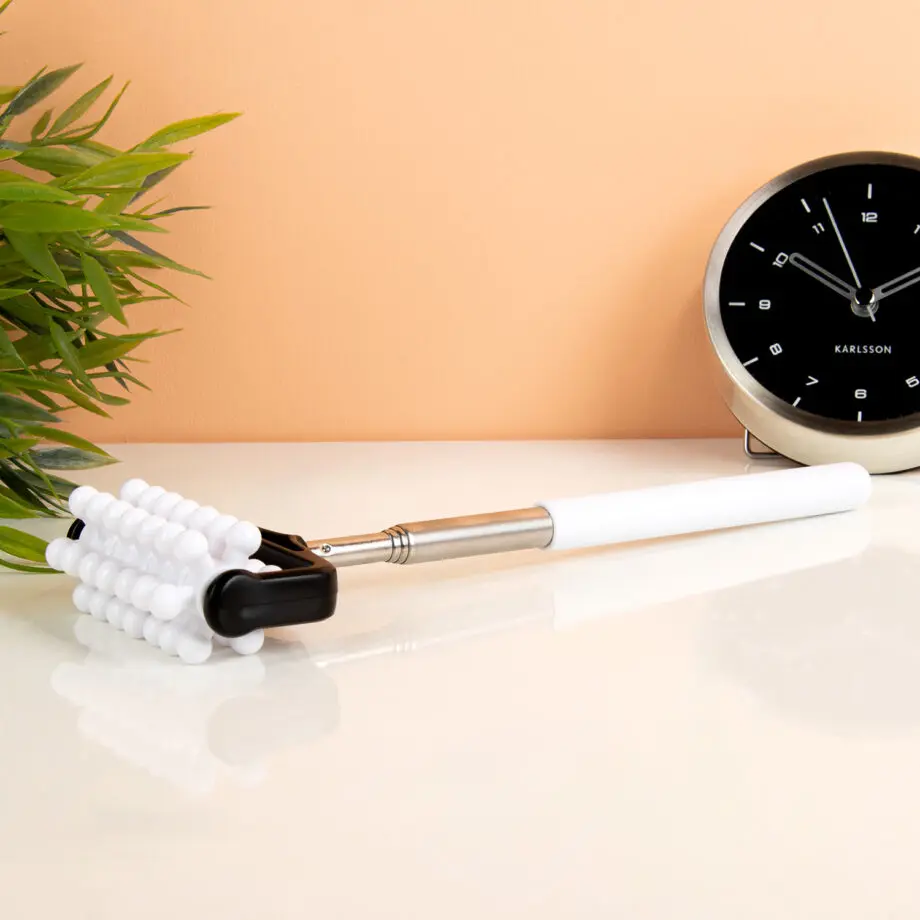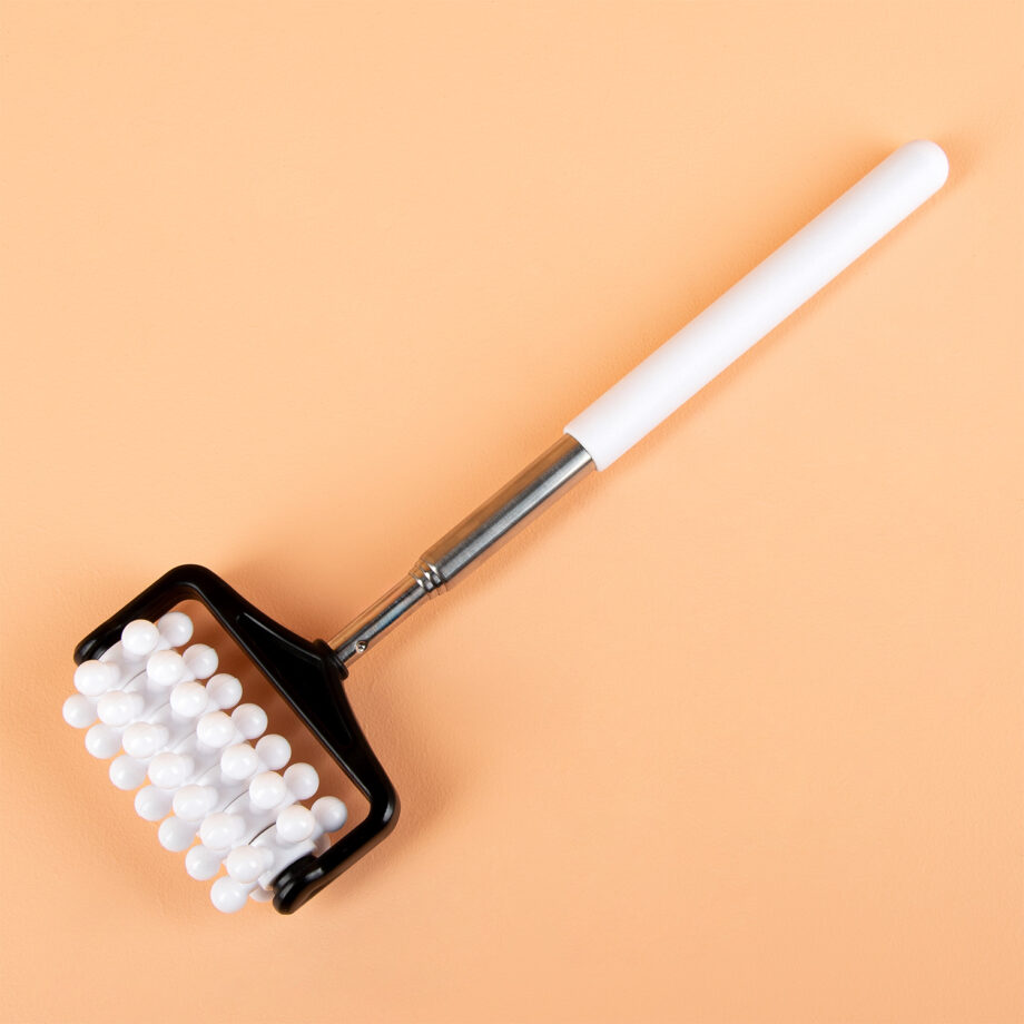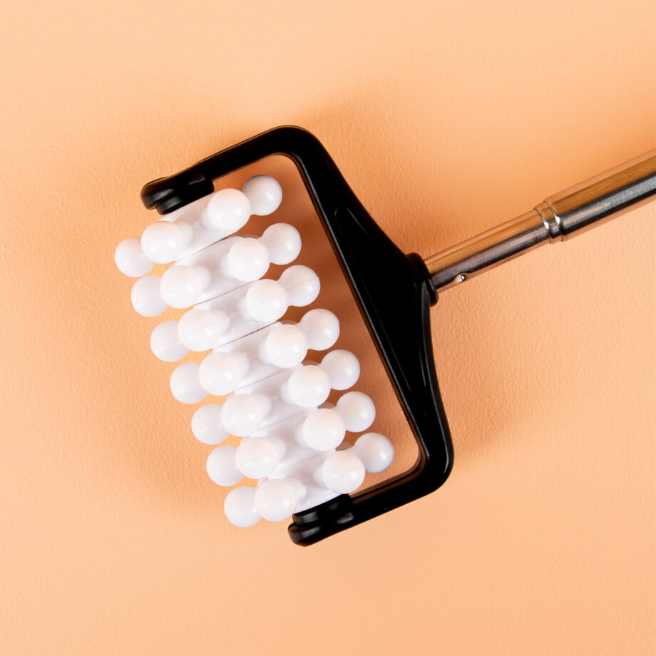 Ben je dol op rugmassages, maar je partner wat minder? Je hebt hem of haar helemaal niet nodig, met de Uitschuifbare massageroller van Out of the Blue. Deze handige massageroller heeft zeven wieltjes met bolletjes, die afzonderlijk van elkaar draaien. Rol de roller over je huid en voel hoe de bolletjes je huid en spieren masseren. Door het uitschuifbare handvat kun je alle moeilijk bereikbare plekjes masseren.