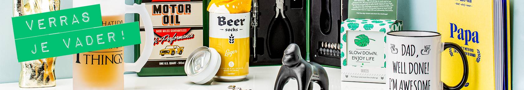 Vaderdag is de perfecte gelegenheid om die belangrijke man in je leven te bedanken voor alles wat hij voor je doet. Heb je wat inspiratie nodig? Of het nu zijn eerste Vaderdag is of voor de vader die lijkt alles al te hebben: met onze tips geef je hem een persoonlijk en uniek cadeau. Zeer geschikt zijn bijvoorbeeld onze gepersonaliseerde producten. Denk aan een bierglas met een leuke tekst en jouw naam, of een grappige gepersonaliseerde mok met een leuke foto van jullie samen. In ons assortiment vind je alles van eenvoudige accessoires tot grappige en coole gadgets die erg praktisch zijn. Elke keer als hij zo’n praktisch cadeautje gebruikt, zal hij zich herinneren hoe geweldig zijn kinderen zijn. Andere persoonlijke tips voor Vaderdag zijn producten die bij de meeste vaders in de smaak vallen, zoals barbecue tools, stijlvolle whiskeyglazen of grappige sokken.