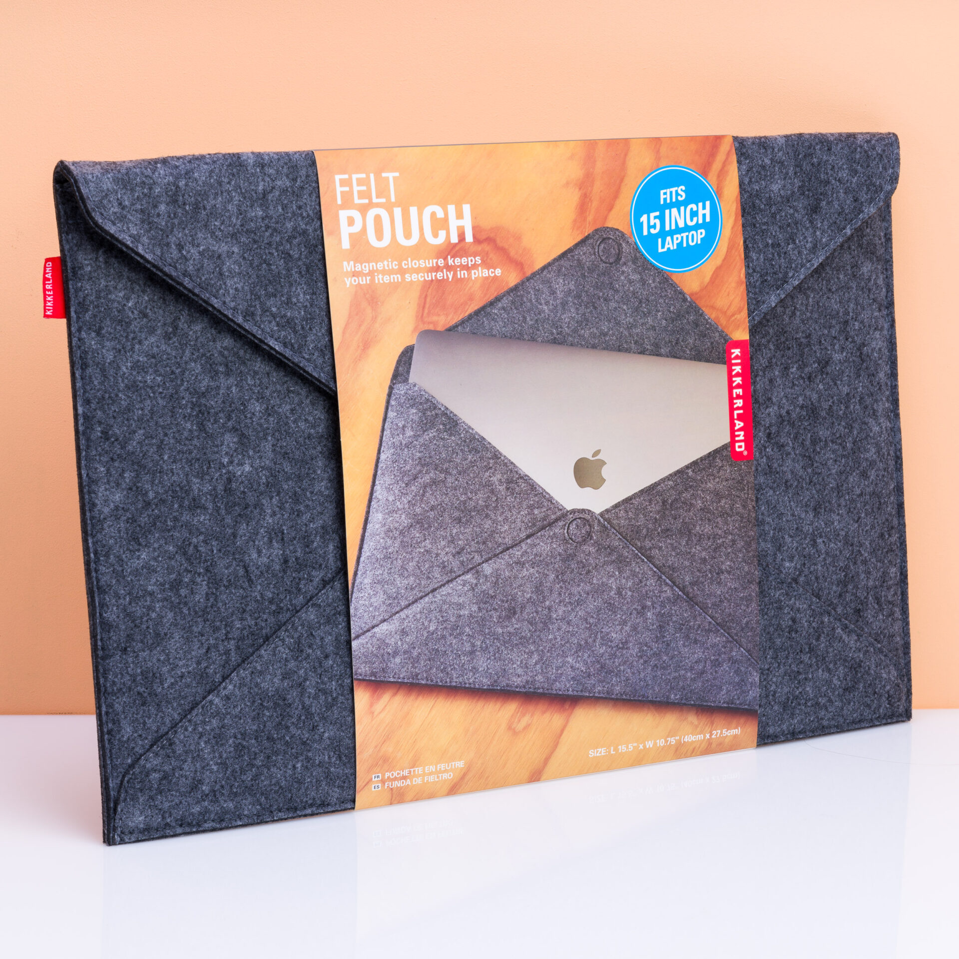 Neem je elke dag je laptop mee naar het werk? Dan weet je dat ‘ie af en toe onverwachts een stootje kan krijgen in de trein of op de fiets. Bescherm je laptop voortaan met de Vilten laptophoes van Kikkerland. Deze luxe envelophoes van grijs vilt is geschikt voor laptops tot 15 inch. Zo kun je de laptop transporteren zonder hem te beschadigen. Leuk als cadeautje voor kinderen die een laptop mee naar school moeten nemen, voor studenten en voor collega’s.