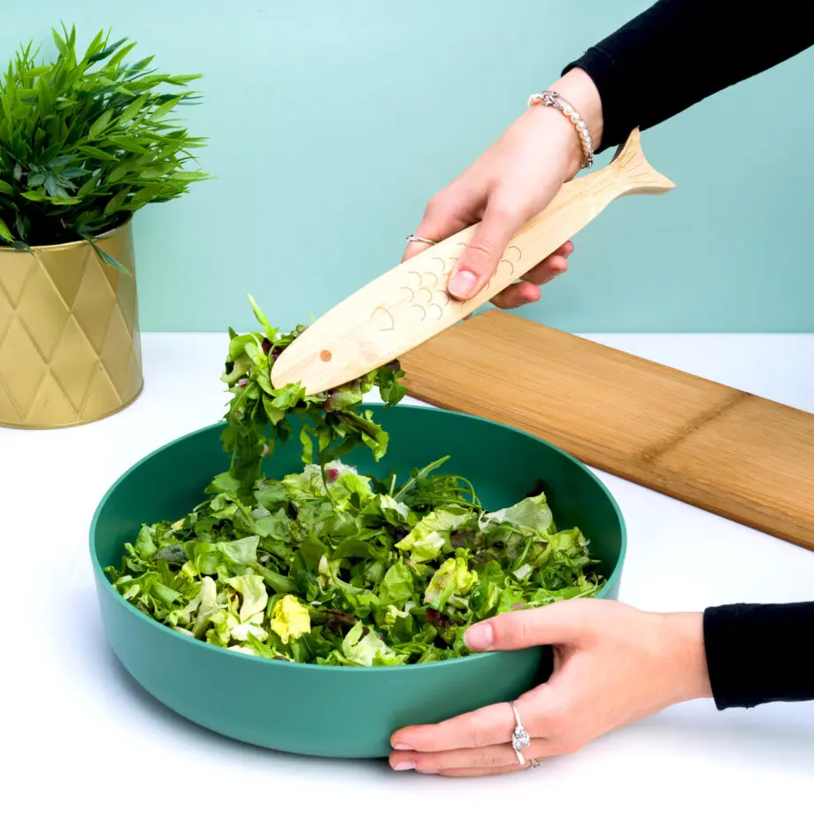 Zet jij graag een lekker maaltje op tafel als er mensen komen eten? Een mooi gedekte tafel hoort daarbij. En vergeet niet om de Vis keukentang van Kikkerland op tafel te leggen. Hij is multifunctioneel: je kunt hem bijvoorbeeld gebruiken om salade, een stukje vlees of vis op te scheppen. Een praktische keukentool, gemaakt van bamboe, die na gebruik graag een rondje zwemt in je vaatwasser.