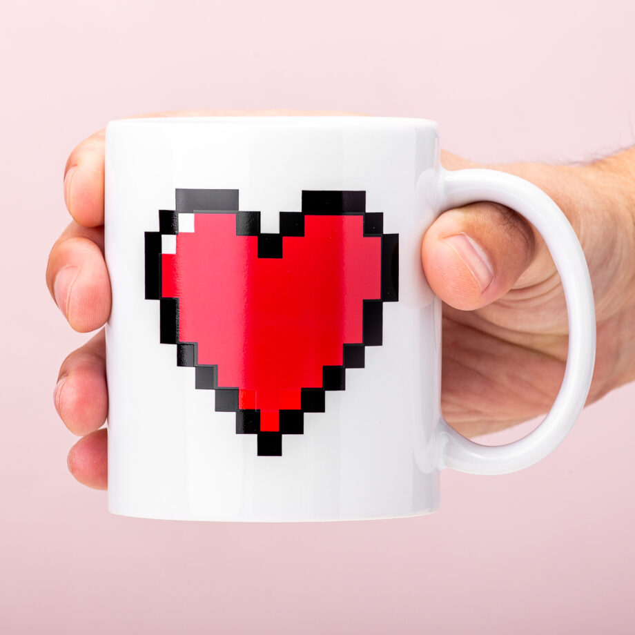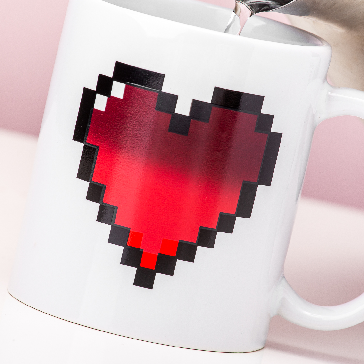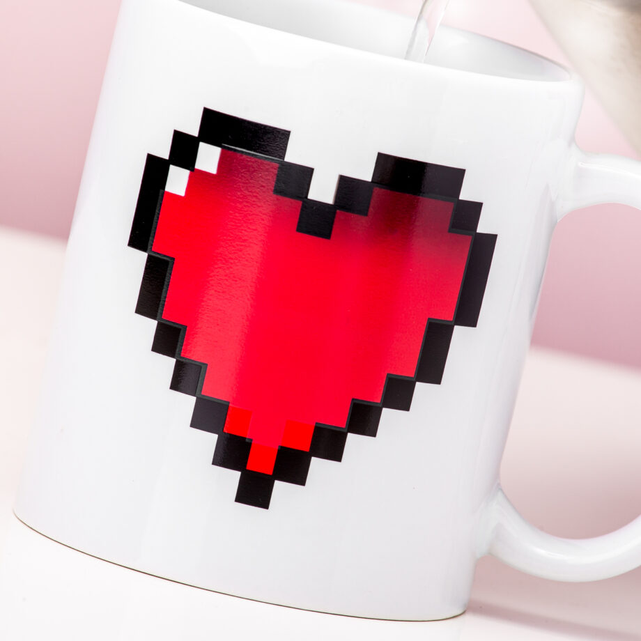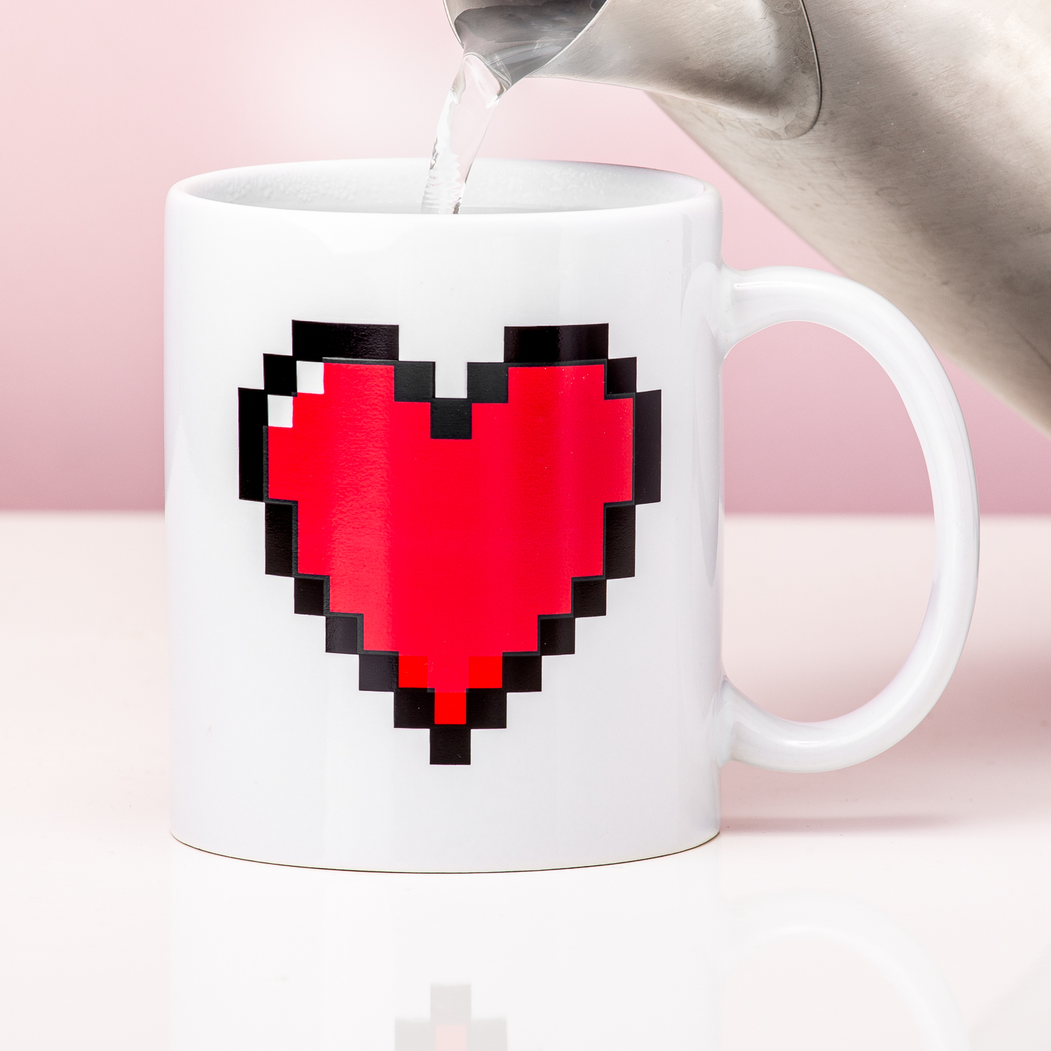 Verras je geliefde met een liefdevol ontbijt op bed: een lekker broodje, een glaasje sinaasappelsap en natuurlijk een kop koffie of thee in de Warmtegevoelige mok pixel hart van Kikkerland. Met deze warmtegevoelige mok toon jij je liefde op een originele manier. Deze magische mok heeft namelijk een zwart hart met pixeldesign dat rood kleurt als je hem vult met een warme drank. Super origineel en een leuke verrassing voor je lief of die collega op wie je stiekem een oogje hebt.