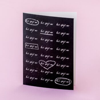 Een vergeten verjaardag of een domme ruzie: excuses komen zoveel beter over als je ze op een kaart schrijft. Laat zien dat je spijt hebt en moeite doet om het goed te maken, met de Wenskaart Het spijt me. Deze kaart in krijtbordstijl is volgeschreven met de woorden ‘het spijt me’. De dubbele kaart heeft meer dan voldoende ruimte om je excuses in op te schrijven. Je kunt je persoonlijke boodschap ook door ons laten schrijven en de kaart rechtstreeks naar de ontvanger sturen.