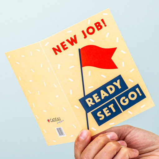 Feliciteer je vader of beste vriendin met zijn of haar nieuwe baan met een leuke kaart. Met de Wenskaart Nieuwe baan laat jij diegene weten hoe trots je bent. Op de kaart staat de tekst: New job! Ready, set, go! en een vrolijke rode vlag. Stuur de kaart rechtstreeks naar de ontvanger met een persoonlijke tekst die wij er voor je opschrijven of laat de kaart bij je thuisbezorgen, zodat je de tekst zelf kunt schrijven. Ready, set, go!