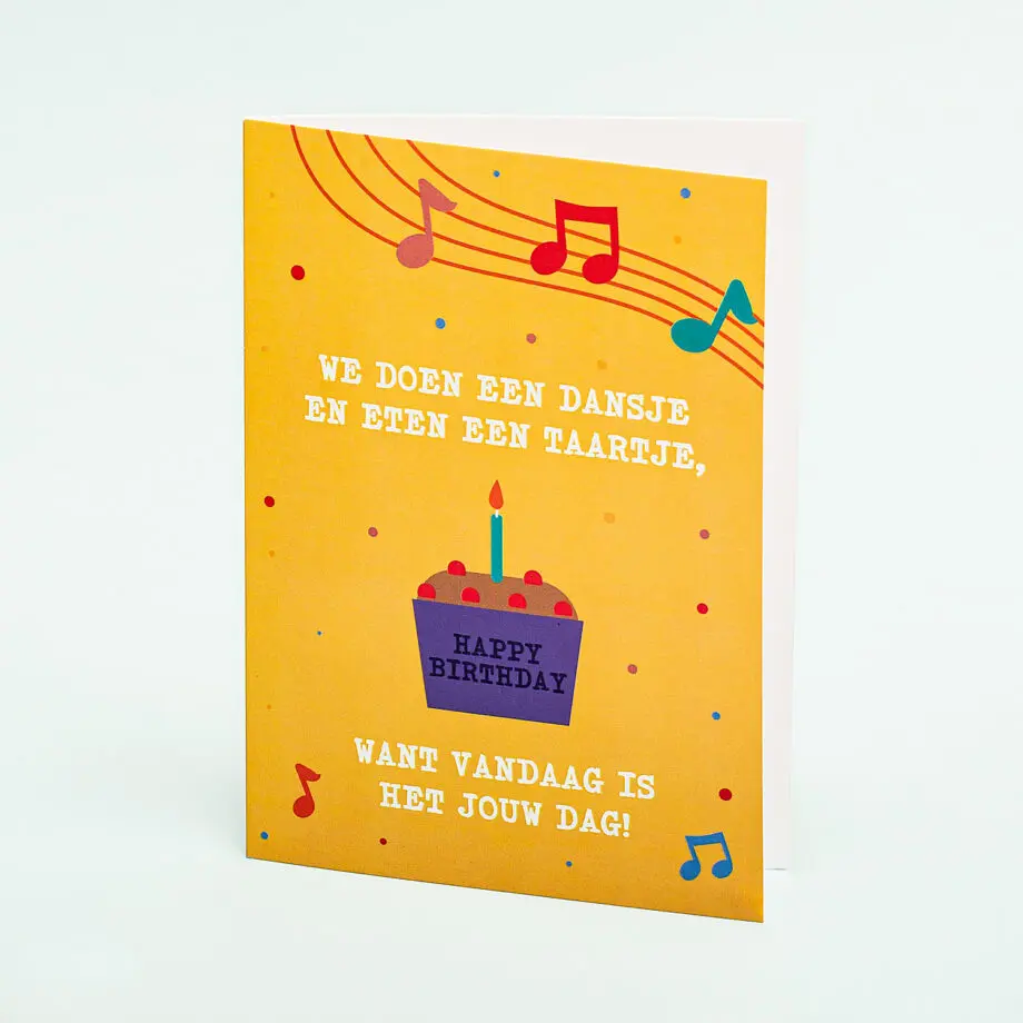 • Met de tekst: We doen een dansje en eten een taartje, want vandaag is het jouw dag!