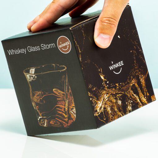 Is je vriend, opa of moeder een liefhebber van whiskey en wil je hem of haar iets echt bijzonders geven? Kies dan voor het Whiskey glas storm van Winkee. Dit glas is niet rond of vierkant, maar is zo vormgegeven dat het lijkt alsof er een storm in het glas woedt. Hierdoor is het net alsof de whiskey niet gewoon in het glas zit, maar op woeste golven deint. Een chique glas, wat een perfect cadeautje is.