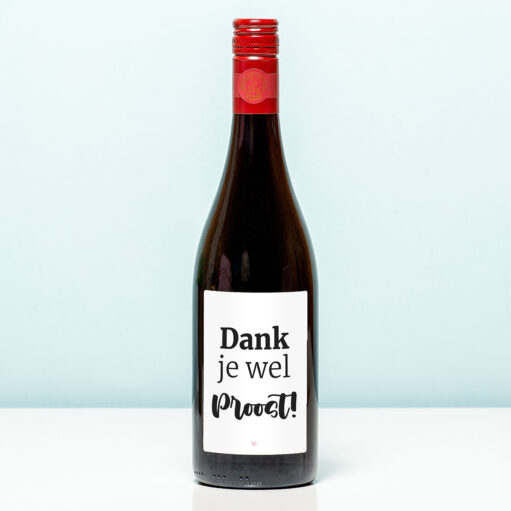 Een bos bloemen is leuk als bedankje, maar het is niet zo lekker als een fles wijn. De Wijnfles Dank je wel proost is het perfecte cadeautje als je iemand wilt bedenken. Deze fles wijn heeft een origineel etiket met daarop de tekst: Dank je wel. Proost! Een leuk cadeautje als vrienden hebben geholpen met verhuizen, je vader weer eens je wasmachine heeft gerepareerd of voor de juf, die weer een schooljaar heeft overleefd.