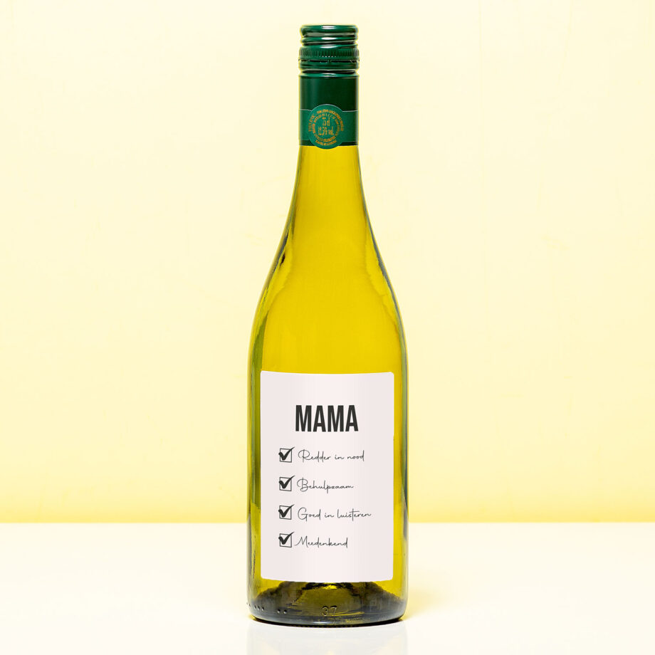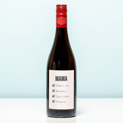 Welke goede dingen heb jij allemaal over je moeder te zeggen? Dat ze behulpzaam is? goed in luisteren? Meedenkend? En natuurlijk jouw redder in nood? De Wijnfles Mama checklist heeft het allemaal voor je op een rijtje gezet. Geef haar deze wijn cadeau, voor bijvoorbeeld Moederdag of gewoon zomaar. Ze zal het waarderen!