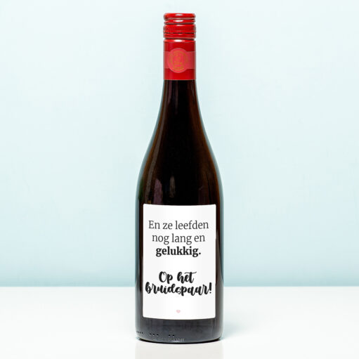 Wat is feestelijker dan een fles wijn cadeau geven aan een pasgetrouwd stel? Een wijnfles met een speciale boodschap! De Wijnfles Op het bruidspaar is speciaal ontworpen voor mensen die net zijn getrouwd. Op het etiket staat de tekst: En ze leefden nog lang en gelukkig. Op het bruidspaar! Een ideaal cadeautje om bij de envelop met geld te geven.