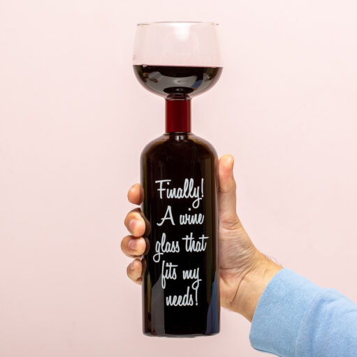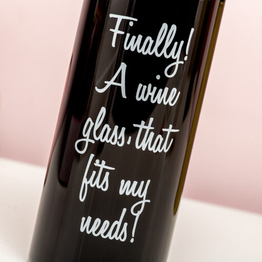 - Met de tekst: Finally! A wine glass that fits my needs!
