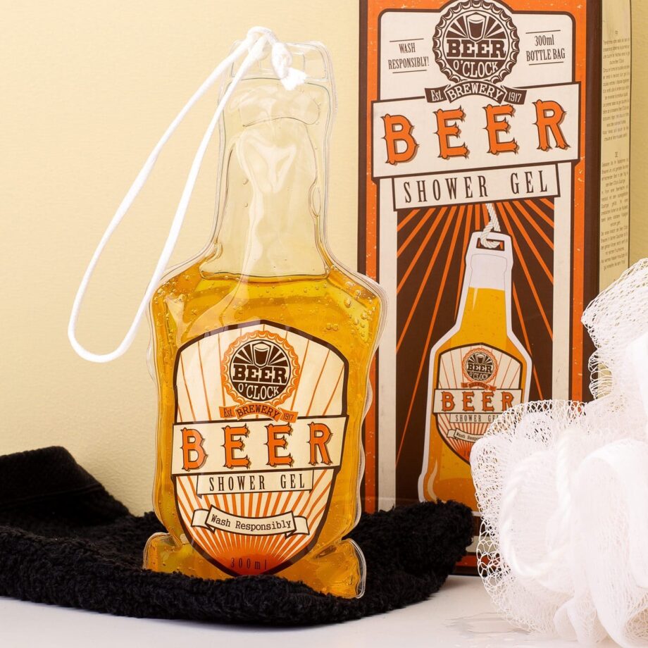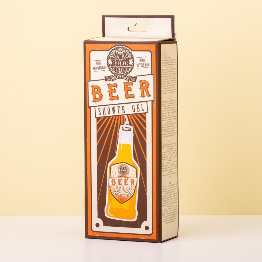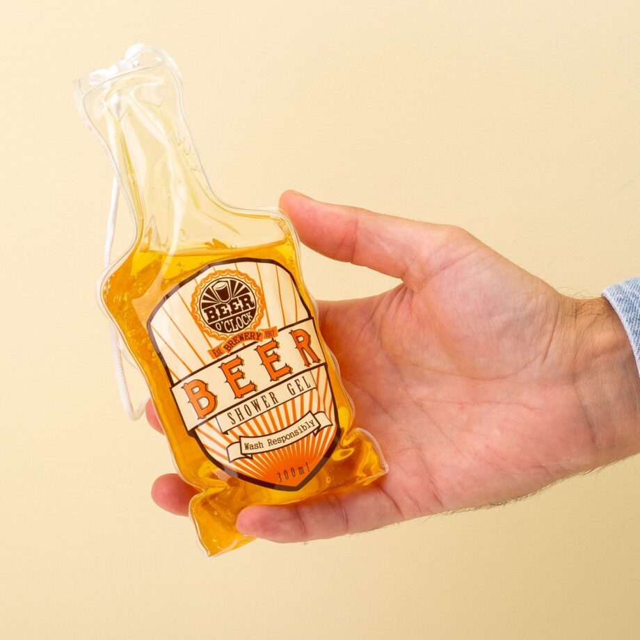 - Douchegel die in de verpakking lijkt op een bierflesje