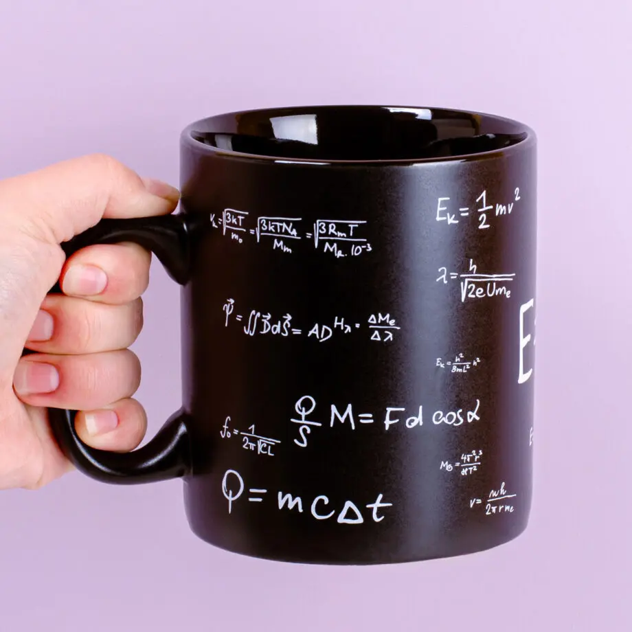 Voor de รฉรฉn is het een logische manier om ingewikkelde dingen te berekenen, voor de ander is het een wirwar van letters en gekke tekens: wiskundige formules. Op de Wiskunde mok van Out of the Blue staan er een heleboel, waaronder misschien wel de bekendste van allemaal: Einsteinโs E = mcยฒ. De mok is een leuke manier om te studeren voor wiskunde of om je leraar te bedanken.