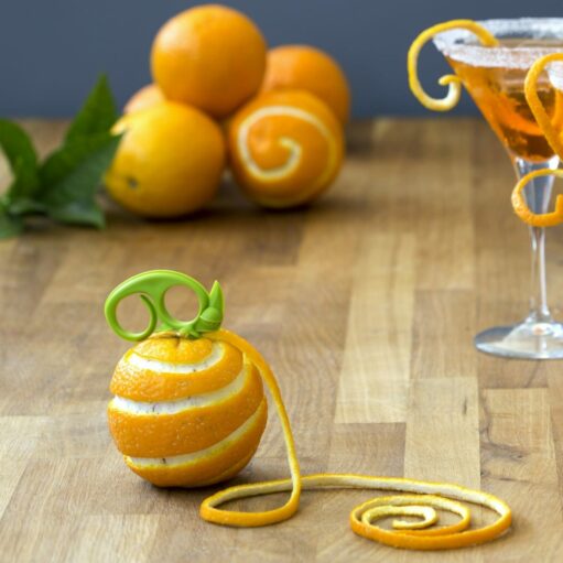 Zesty fruitrasp en -schiller van Peleg Design. Dit is een fruitrasp en -schiller die eruit ziet als een kameleon. Kleur: groen. Voor het raspen en schillen van citrusvruchten. Met de rasp is het heel gemakkelijk om de buitenste laag van een sinaasappel of citrus eraf te raspen. Met de punt van de kameleon is het mogelijk om heel eenvoudig de schil eraf te schillen. Dit is het perfecte huisdier bij het eten van citrusvruchten. Gemaakt van kunststof. Afmeting: 6,2 x 3,7 x 1,8 centimeter.
